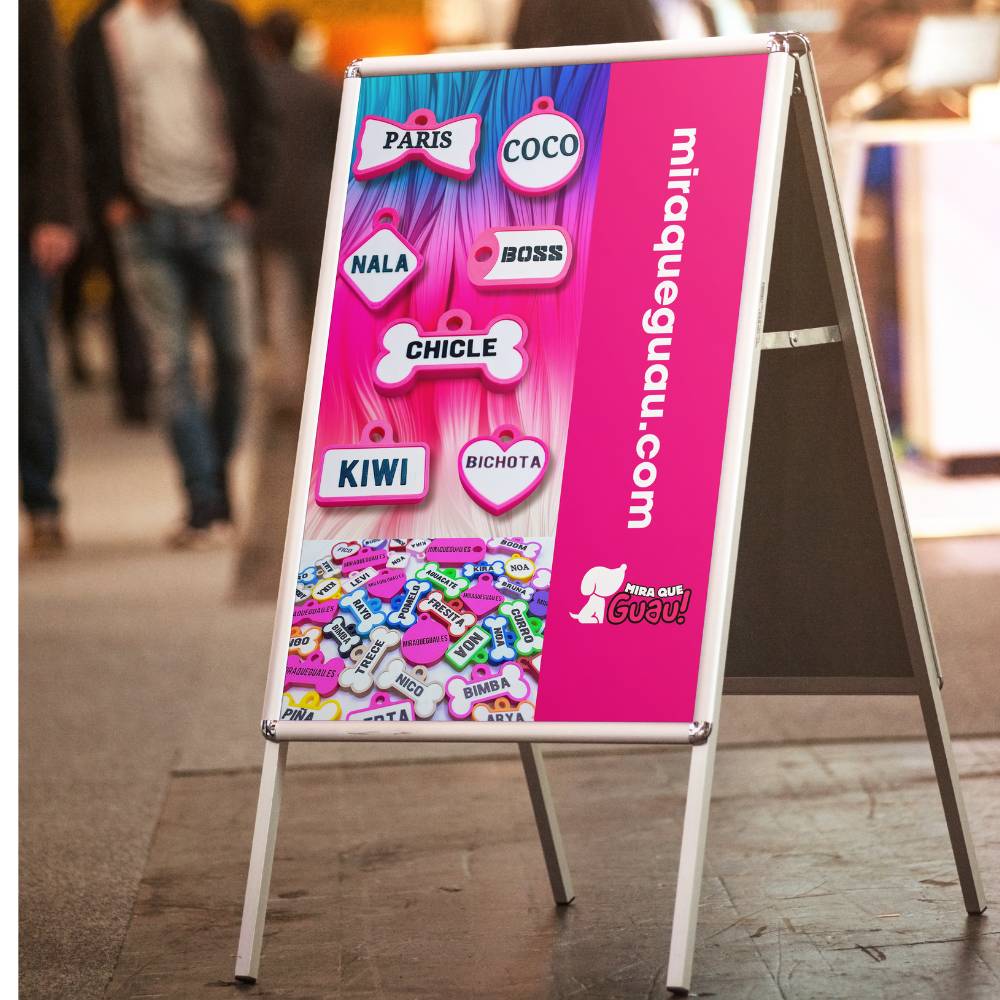 Caballetes publicitarios personalizados, perfectos para captar la atención en calles, ferias o puntos de venta. Con una impresión de alta calidad y estructuras resistentes, son una herramienta efectiva para comunicar promociones y dirigir clientes a tu negocio.